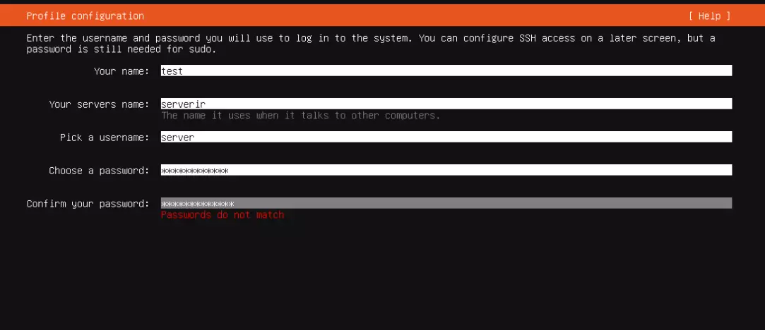 پس از آمادهسازی دیسک، نوبت به ایجاد حساب کاربری میرسد. در این بخش اطلاعات زیر وارد میشود:
