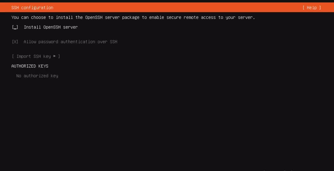 در مرحله تنظیمات SSH، گزینه نصب OpenSSH را فعال کنید تا امکان اتصال امن و مدیریت از راه دور سرور فراهم شود. SSH یکی از اصلیترین و امنترین روشهای دسترسی به سرورهای لینوکسی است.